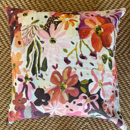 “Garden party” 55x55cm linen cushion with quality feather insert.