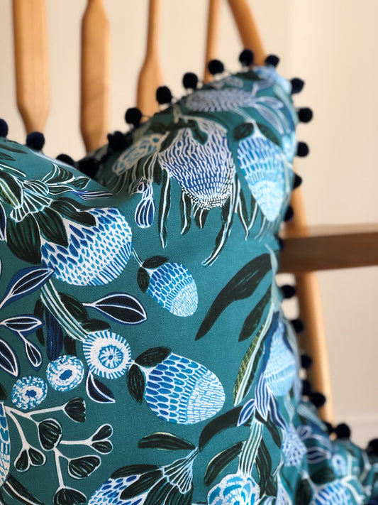 Locally handmade cushion with bobble trim 45x45cm