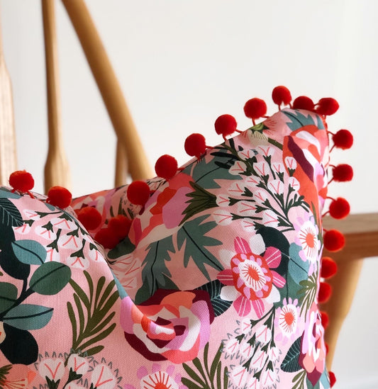 locally handmade cushion with bobble trim 45x45cm